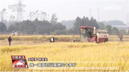 农机手钟茂生:通过机收减损,一亩田可以减损三十多斤,六百多亩田可以增收两万多块钱。