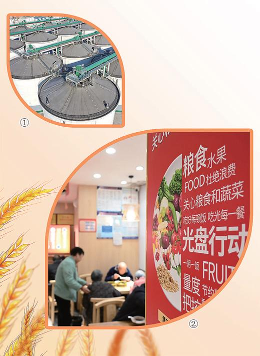 图①:河北省秦皇岛市海港区,中央储备粮秦皇岛直属库有限公司海港粮食储备基地项目三期工程。曹建雄/摄(人民视觉)图②:河南省漯河市源汇区老街街道,社区食堂贴有反对浪费等内容的宣传画。尤亚辉/摄(人民视觉)