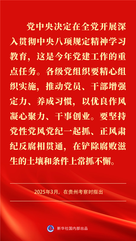 中央党的建设工作领导小组近日召开会议指出,党中央决定,自2025年全国两会后至7月在全党开展深入贯彻中央八项规定精神学习教育。