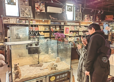 记者在一家狐獴专卖店看到许多人围坐聊天。据介绍,他们都是北京的狐獴同好,大家通过网络结识,周末到店里交流饲养经验。“以前养的人很少,现在慢慢多了起来,顾客群主要是对新奇小动物充满好奇与探索欲的年轻人。”店家说。