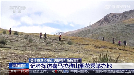 近日,户外品牌始祖鸟联手艺术家蔡国强在喜马拉雅山脉燃放艺术烟花引发争议。9月22日在现场修复的环保专家告诉记者,青藏高原生态脆弱,烟花燃放对当地生态造成了影响,初步判断遭到破坏面积不大,他们正在清理现场的紫铜、塑料桶等,同时对生态进行修复。(据9月22日央视新闻报道)