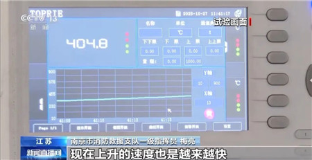 江苏省南京市消防救援支队一级指挥员梅亮:烟头燃烧的点位离提前放置的感温触点越来越近,温度上升的速度也是越来越快,最高温度已经达到了700多摄氏度。