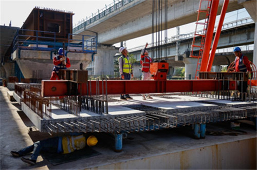 2025年12月21日,网格安全监督员在施工现场检查吊装设备。新华社记者 邓华/摄