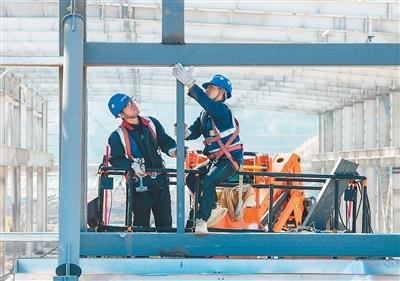 位于安徽省芜湖市繁昌区荻港镇的一家零碳产业园项目标准化厂房建设现场,工人正施工作业。肖本祥/摄(人民视觉)