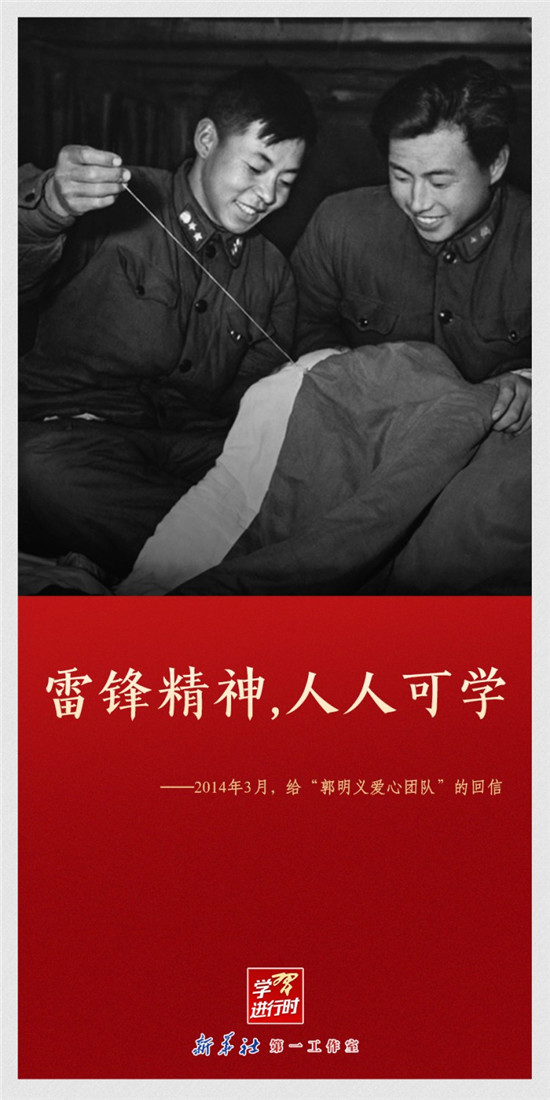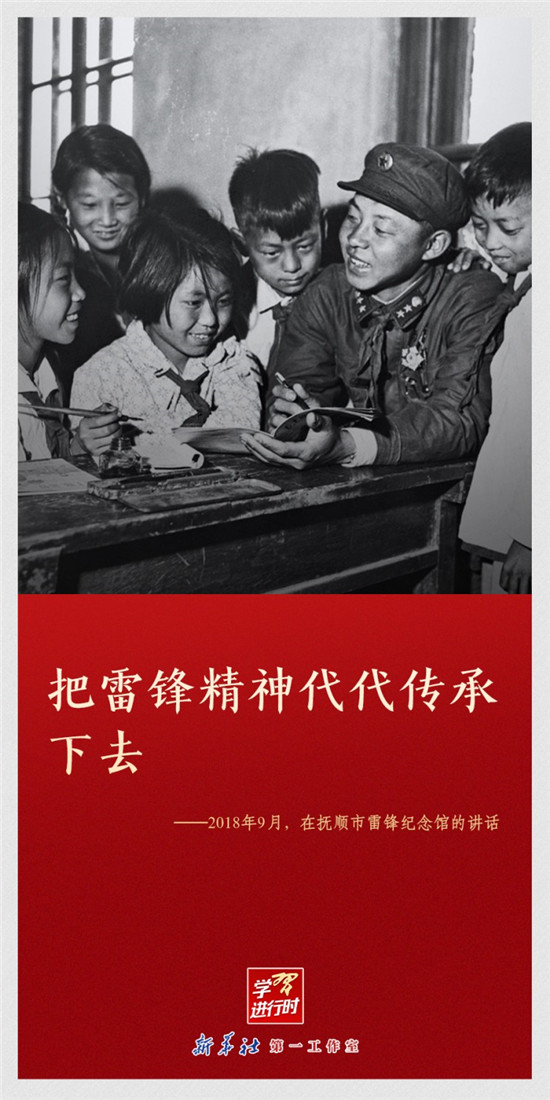 【学习进行时】“雷锋精神永不过时”“让学雷锋活动融入日常、化作经常”“雷锋精神,人人可学”……党的十八大以来,习近平总书记多次动情地谈到雷锋精神。在学雷锋纪念日到来之际,让我们一起重温习近平总书记关于雷锋精神的重要论述。