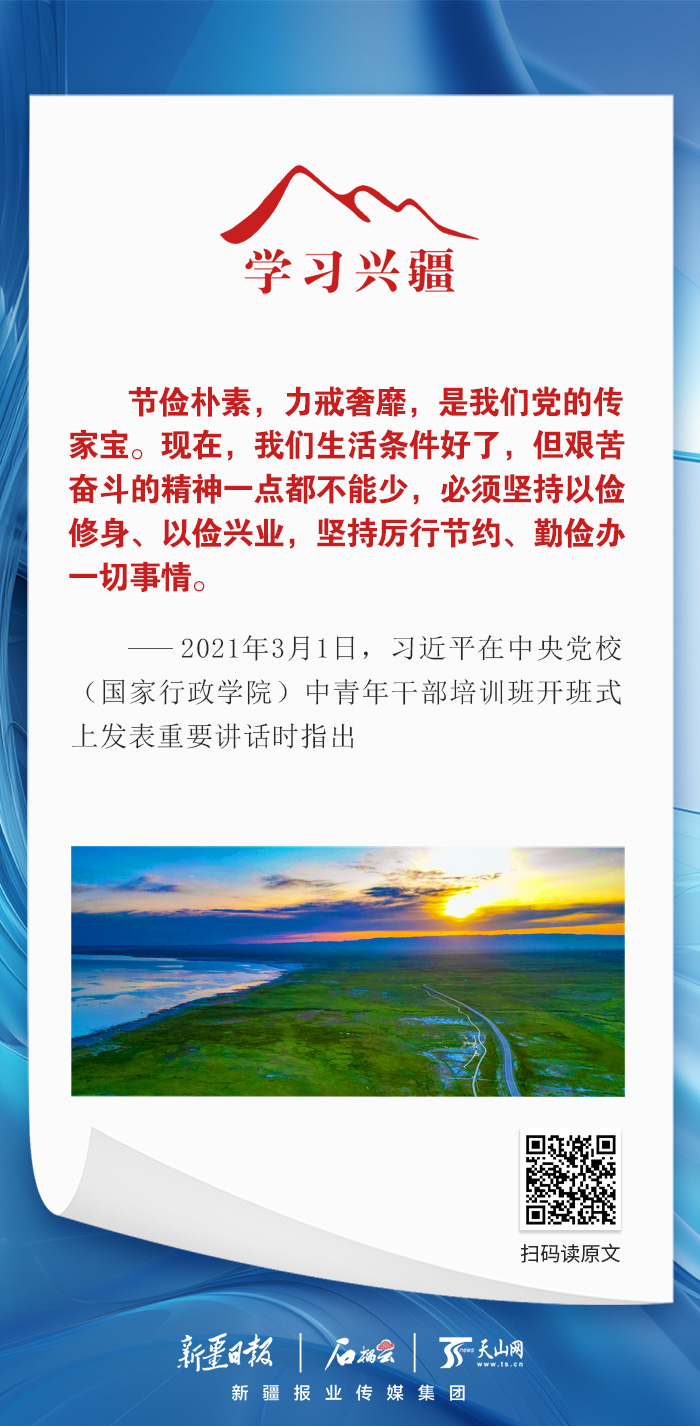 节俭朴素,力戒奢靡,是我们党的传家宝。现在,我们生活条件好了,但艰苦奋斗的精神一点都不能少,必须坚持以俭修身、以俭兴业,坚持厉行节约、勤俭办一切事情。