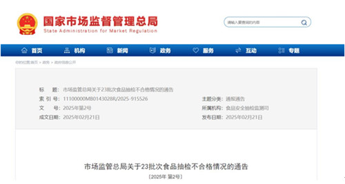 近期,市场监管总局近期组织食品安全监督抽检1315批次样品,检出23批次样品不合格。对抽检发现的不合格食品,有关省级市场监管部门已组织开展核查处置。监督抽检不合格食品具体情况如下: