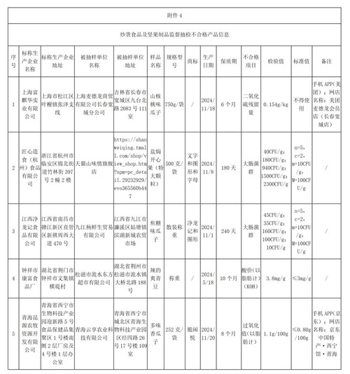 (四)京东中国特产•西宁馆•青海(经营者为青海云享农业科技有限公司)在京东(手机App)销售的、标称青海昆源农牧资源开发有限公司生产的多味香瓜子,其中过氧化值(以脂肪计)检验值不符合食品安全国家标准规定。