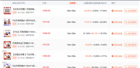 此外,蝉妈妈数据显示,天萁西梅汁总的销售量至少在150万件以上,而在销量排名靠前的商品中,消费者在直播中购买的占比最高能达到98%。