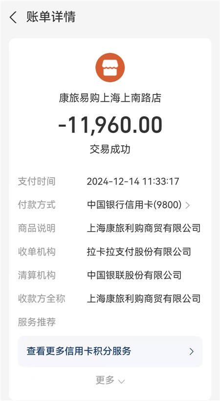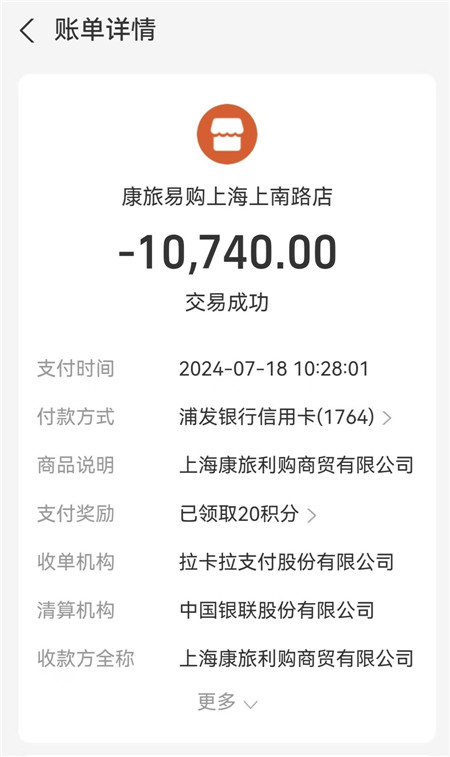 2024年7月,门店让薛阿姨去领奖品。她告诉记者,当天,她带上老伴进店,一进门就被叫去开会,门店并没有直接派发福利。“业务员说,领导要给我们开会,开完发大礼品,有葡萄酒、麦片、茶叶。大家一听就特别兴奋。过去开会的都是我们老年人。”薛阿姨称,开会时手机没有没收,但一再强调不能拍照、录像,更不能和相邻者交谈。有个人在台上介绍羊奶粉,滔滔不绝,宣讲后业务员涛涛更不断怂恿她购买商品。“我和老伴不想买,说没钱。最后架不住业务员穷追猛打,他说要跟我们到家里去取钱,没办法,只好买了。”最后,夫妇俩购买了66桶羊奶粉,手机支付10740元,收款方是“上海康旅利购商贸有限公司”。