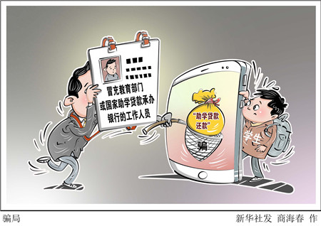 新华社图表,北京,2025年2月20日 全国学生资助管理中心近日发布2025年第1号预警,提示广大助学贷款学生警惕“助学贷款还款”骗局。近期有不法分子冒充教育部门或国家助学贷款承办银行的工作人员,以帮助助学贷款借款人办理还款为由,通过共享手机屏幕获取验证码、窃取账户密码、引导向第三方账户转账等方式骗取借款人钱财。 新华社发 商海春/作