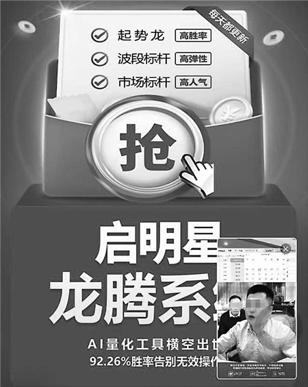 图:一直播间推荐的AI量化工具声称有92.26%胜率。资料图片
