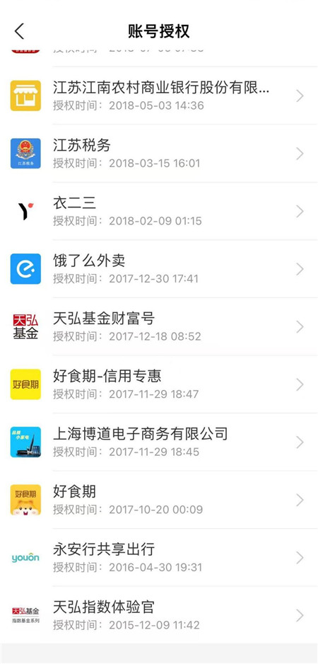 有人体验发现,自己不知不觉授权了121项,其中最早的是2015年底授权的“天弘基金”,用于购买余额宝,授权内容包括姓名、手机号及证件号码等敏感信息;最近的是今年8月底授权的“全国住房公积金公共服务”,授权内容为获取姓名、身份证号等身份信息……