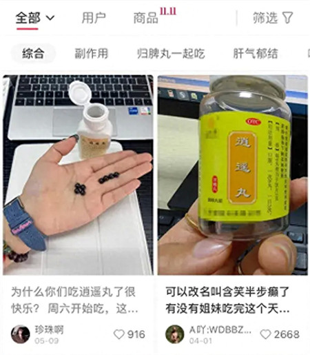 11月7日,记者在某社交平台上搜索“逍遥丸”,显示相关帖子达2万多篇。有不少网友发帖声称吃了“逍遥丸”不抑郁不失眠还能开心一整天。某网购平台上,单个店铺的仲景逍遥丸总销量竟超过20万单。