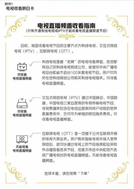 电视收看“明白卡”。来源:国家广播电视总局官网