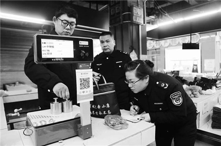 春节期间,广西壮族自治区龙胜县市场监管局严厉打击缺斤短两、计量作弊违法行为,对辖区集贸市场、商场超市、水果店的电子秤进行登记并建立“两个台账”,对检定合格的电子计价秤张贴强检合格标签。 兰晓孟 本报记者 顾艳伟摄影/报道 中国消费者报(2024年02月19日第3版)