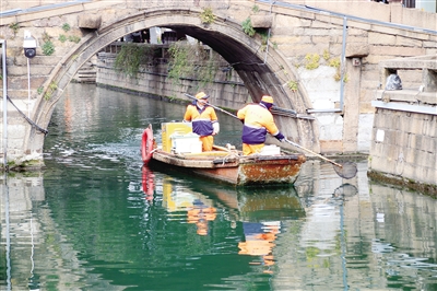 春节期间,江苏苏州许多河道“美容师”坚守岗位