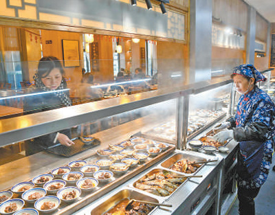 2月23日,安徽省铜陵市义安区钟鸣镇永泉农庄自助餐厅为顾客提供了小份菜。过仕宁/摄(人民视觉)