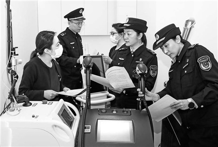 为进一步加强医疗美容领域医疗器械质量安全监管、切实保护消费者合法权益,北京市东城区市场监管局对辖区医疗美容机构开展专项检查,要求经营者严格按照说明书储存、使用医疗器械,确保使用安全。本报记者董芳忠摄影/报道 中国消费者报(2024年03月11日第3版)