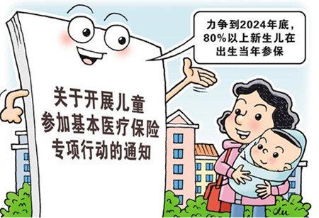 国家医保局、教育部等五部门近日发布《关于开展儿童参加基本医疗保险专项行动的通知》。通知指出,力争到2024年底,80%以上新生儿在出生当年参保。儿童依法参加基本医疗保险,对于保障儿童健康成长具有重要意义。当前,我国儿童参保人数呈现出稳步增长的发展态势,为保障儿童健康权益发挥了基础性、兜底性作用。但同时,也存在新生儿参保手续多、流程长,少数家长参保意识不强等问题。为此,五部门从加大儿童参保动员力度、优化新生儿参保流程、协同优化参保政策和医疗服务供给等方面对专项行动作出部署。下一步,相关部门将按照通知要求,开展好儿童参加基本医疗保险专项行动,切实提高儿童参保覆盖水平,保障儿童参保权益,维护儿童健康。