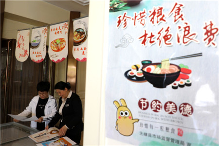 今年以来,无棣县积极推进“光盘行动”,指导各餐饮服务单位在醒目位置张贴“光盘行动杜绝浪费”等主题海报2300余份,设置“文明用餐按需点餐”提示牌1000余个,在全社会营造节约光荣、浪费可耻的浓厚氛围。