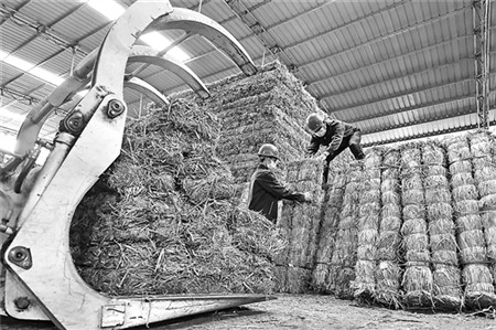 5月24日,工人在贵州省遵义市新蒲新区三渡镇草制品公司车间搬运草支垫。 近年来,贵州省遵义市新蒲新区三渡镇积极探索秸秆利用新路径,2022年该镇共回收周边农户的水稻、辣椒、高粱等秸秆3.23万吨,带动150多名群众就业,进一步壮大集体经济,助力乡村振兴。新华社发(简垦摄) 《工人日报》(2023年05月26日07版)