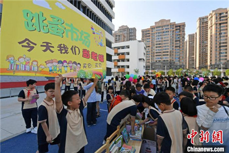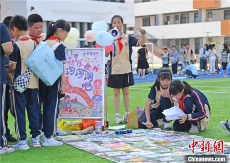 5月26日,福建省泉州市泉港区福建师范大学泉港实验小学“小市场大收获——跳蚤市场”热闹开市。同学们把家中闲置的书籍、玩具拿到“跳蚤市场”上进行售卖和交换,在锻炼社交能力、感受“淘宝”乐趣的同时,养成勤俭节约、爱物惜物的良好习惯,共同推动共建共治共享的和谐美好家园建设。