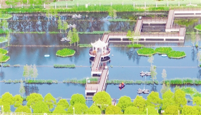 近年来,江苏省海安市大力推进水环境治理,坚持工程治污与生态修复并重,充分发挥自然生态系统的净化降解功能与减污降碳协同效应,已建成10个生态安全缓冲区,实现污水零直排、尾水再利用。图为海安市的生态安全缓冲区。