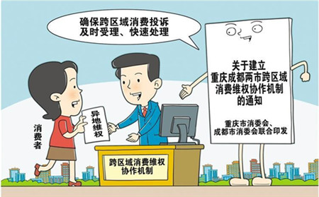为不断降低重庆、成都两市消费者异地维权成本,确保跨区域消费投诉及时受理、快速处理,重庆市消委会、成都市消委会近日联合印发《关于建立重庆成都两市跨区域消费维权协作机制的通知》。《通知》明确,坚决贯彻落实党中央关于推动成渝地区双城经济圈建设的战略部署,以建立重庆、成都两市跨区域消费维权协作机制为抓手,积极维护好消费者合法权益,共同构建安全友好的消费环境,让重庆、成都两地消费者能够放心、舒心、安心消费。要发挥两地消委会职能优势,进一步密切两地经济往来、消费联系,推动扩大内需,建设强大繁荣的重庆、成都消费市场。