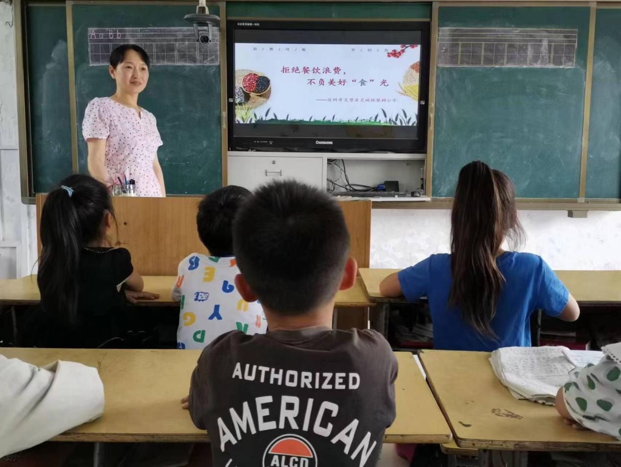 日前,安徽省宿州市灵璧县灵城镇梨树小学开展“拒绝餐饮浪费不负美好‘食’光”主题教育活动,旨在引导广大学生争当“光盘行动”的督导员,杜绝浪费厉行节约从现在做起,从每一餐做起,为形成浪费可耻、节约为荣的社会氛围贡献自己一份力量。