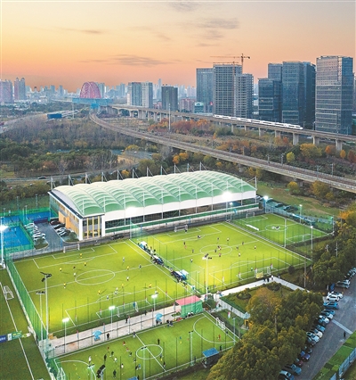 安徽省合肥市包河区近年来启动城乡环境卫生整治提升专项行动,将十八岗闲置空地按照“绿化覆盖+体育场地”方式进行整改,满足市民日常休闲、健身需求。 图为该市十八岗体育公园。 李鹏飞/摄(人民视觉) 《人民日报海外版》(2024年12月11日第09版)