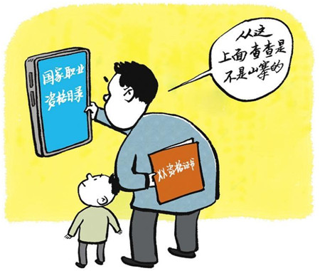 证书是提升职场竞争力的利器,许多领域就业创业乃至等级评定都离不开证书。然而,一些所谓“证书”,看上去正规,甚至印有部委名称、国徽等标识,却不在最新版的国家职业资格目录中,是打着职业资格证书名义的假证书。“山寨证书”的背后藏着“生意”,有的单位和机构借由举办培训、发证活动,乱收费、滥发证;有的则虚假或夸大宣传,甚至假冒权威机构名义组织培训、颁发证书等;还有的宣传“零基础”“包过”,与找工作、升职加薪挂钩,令不明真相的求职者花钱买“山寨证书”,损害了劳动者权益。对此,有关部门应继续加大打击力度,深入开展专项治理,广大劳动者也应提高警惕,注意在官方网站查询证书信息,擦亮双眼谨防“山寨证书”。
