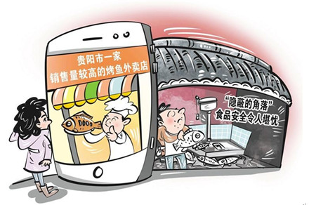 近日贵阳市一家销售量较高的烤鱼外卖店被曝出在墙面、地面满是发霉、发黑污垢的厕所里清洗食材,剖开的鱼直接堆放在蹲坑旁。当地市场监管部门已责令涉事外卖店停业整顿。此事对食品安全敲响警钟,外卖在餐饮中的占比越来越大,必须重视外卖的“隐蔽角落”。如今,不提供堂食的外卖店铺越来越多,消费者难以监督,需要各方把食品安全的监管网络进一步织牢织密。平台要对入驻商家加大审核甄别力度,对于顾客反映强烈的商家,应及时给予处罚并发出消费提示。相关部门不妨邀请熟悉情况的外卖员作为食品安全监督员,增强监督工作的即时性。“互联网+明厨亮灶”也应进一步推广,倒逼经营者压实主体责任。
