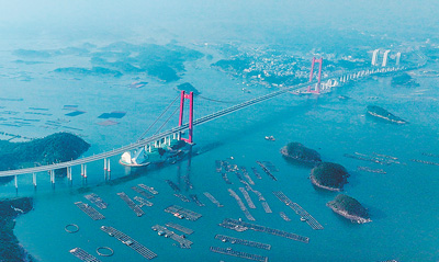 位于广西钦州市的龙门大桥29日顺利通车。通车后,防城港与钦州港的行车时间由原来的1.5小时缩短至25分钟左右。