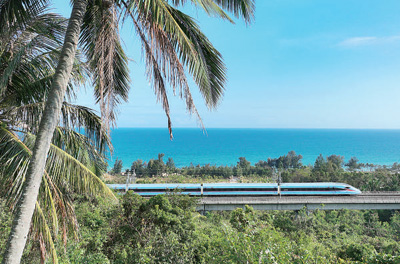 CR300AF型列车行驶在海南东环高铁线上。蔡晶/摄(人民视觉)