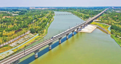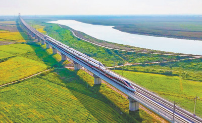 CR400AF型列车运行在京津城际铁路上。罗春晓/摄(人民视觉)