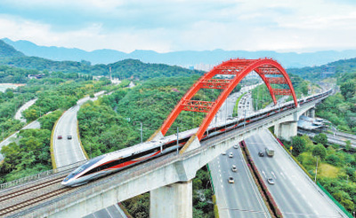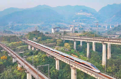 CR400AF—S型列车驶过重庆。龙帆/摄(人民视觉)