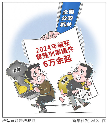 新华社图表,北京,2025年2月20日 记者2月20日从公安部获悉,2024年,全国公安机关紧紧围绕人民群众反映强烈的涉黄涉赌等治安突出问题,持续强化面上清查、专项打击和重点整治,共破获黄赌刑事案件6万余起,查处黄赌治安案件50余万起。 新华社发 程硕/作