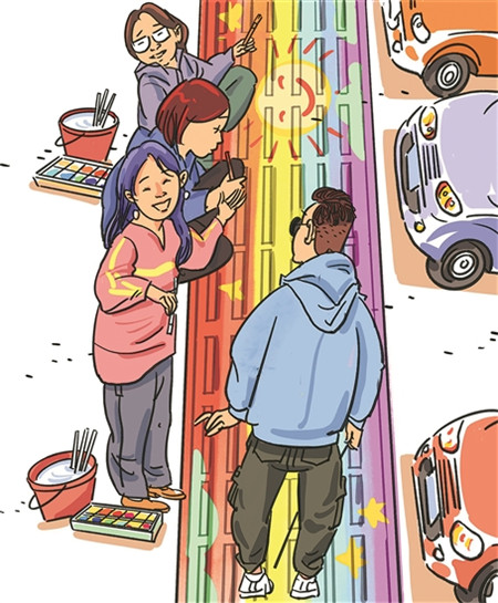 现实中,盲道被占用、堵塞的现象屡见不鲜,让保障视障群体出行的“安全通道”变成了“危险陷阱”。同为残障者,独臂姑娘发起上述活动,既是“自己淋过雨所以为别人撑伞”的共鸣与共情,也体现出年轻一代在公共事务中的责任与担当。长远看,解决视障人群“出行难”问题,一个人的努力远远不够,还需要有关部门规范盲道设计,杜绝“跑偏”“断头”等现象;需要公共场所建设者看见“看不见的需求”,让更多无障碍设施触手可及;更需要我们每个人自觉让出盲道、主动伸出援手。当“一人之力”转化为“众人之力”“社会之力”,这条“彩虹之路”才能无限延伸,通向有爱无碍的“光明坦途”。