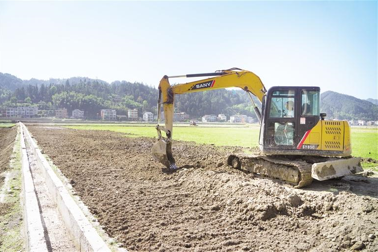 三穗县长吉镇贵秧村,挖掘机正在对农田进行改造提升。刘三隆/摄(贵州图片库)
