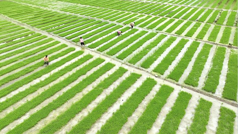 村民在岑巩县思旸镇盘街村移栽制种水稻秧苗。万再祥/摄(贵州图片库)