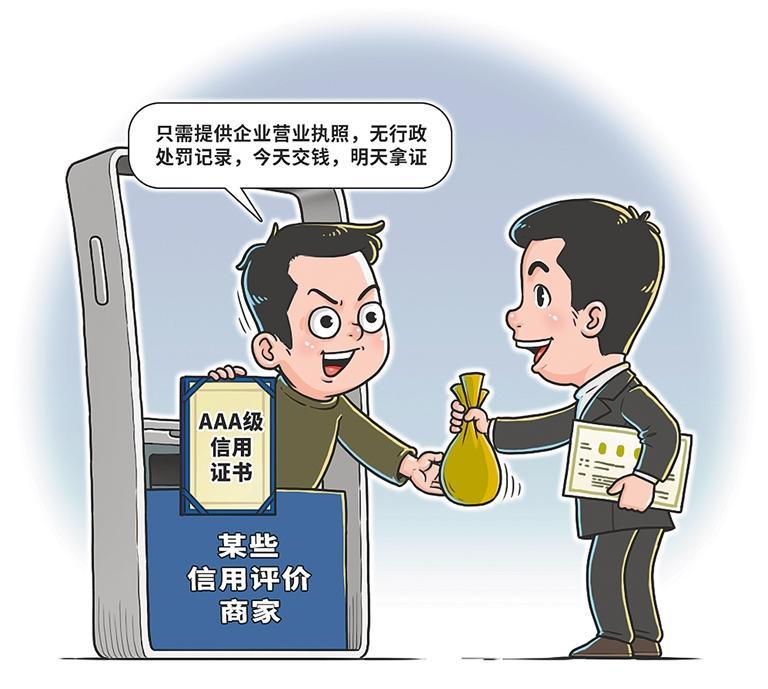 AAA级信用等级证书、AAA级质量服务诚信单位、AAA级诚信经营示范单位……一些企业拥有各类信用证书,这些证书真的可信吗?近期有调查发现,企业信用评价市场鱼龙混杂,两三个人加一台打印机就能“出证”,交钱“办证”就能秒变信用“优等生”,给一些商家大开“方便之门”。市场乱象扰乱市场秩序,要尽快扫除监管盲区,加强约束做好引导。市场监管、公安等部门需共同发力加以整治,进一步推动信息的跨部门互通,提高信用评价机构的准入门槛,推行强制性的企业信用评价标准。网络平台也要担负起内容审核责任,完善审核机制,强化诚信意识和规则意识。消费者要注意甄别颁发证书的评价机构声誉,避免被误导。