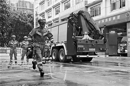 7月15日,消防员在深圳市南山区西丽消防救援站进行备勤训练。 近年来,深圳消防积极推动城市消防治理体系和治理能力现代化,以“中心站+小型站”的“1+N”模式,把站点建到社区里、嵌入街区中,打造城市“五分钟消防救援圈”,力争灭火救援“打早灭小”。 新华社记者 毛思倩/摄 《工人日报》(2025年07月24日07版)