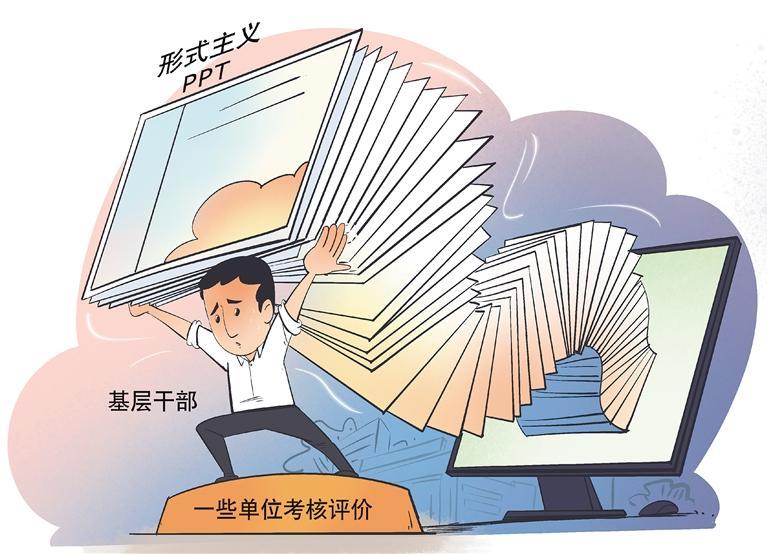 “工作干得好,不如PPT做得好;群众掌声多,不如PPT里动画多。”PPT本应是提高效率的工具,然而在一些地方和部门却变了形、走了样,成为形式主义的新变种。有基层干部吐槽:为了做出一份好看的PPT,不得不耗费大量时间钻研设计。有的基层干部把做PPT当成表现机会,把本该用在服务群众和抓具体落实的时间、精力与资金,浪费在不必要的特效包装上。这种倾向,加重了基层负担,造成了铺张浪费,与求真务实的作风渐行渐远,背后折射出扭曲的政绩观。中共中央办公厅、国务院办公厅印发《整治形式主义为基层减负若干规定》,指出形式主义、官僚主义是顽瘴痼疾,必须下大力气坚决纠治。纠治PPT里的形式主义,重点是要树立正确政绩观,多点实绩、少点包装,让真抓实干蔚然成风。