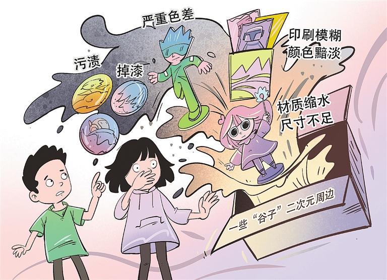 吧唧(徽章)、立牌、卡牌、手办……年轻人购买这些被称作“谷子”的二次元周边,已成为一种消费新现象。风口之上,“谷子”的质量安全也备受关注。网上关于吧唧、立牌出现污渍、掉漆等的投诉屡见不鲜,有的产品含有有害物质,长期接触可能对人体造成伤害。未成年人好奇心强,对产品质量鉴别能力差,且一些新开发的网红玩具标准缺失,存在监管盲区,给了不法商家可乘之机。一些在售的产品甚至没有合格证。“谷子经济”要行稳致远,质量安全规范与常态化监管是关键。应对校园周边商店、文具店及辖区内玩具文具批发店等重点场所加强监管,电商平台要加强对商家的准入审核。尽快出台产品或行业标准,确保生产厂家“有标可依”。消费者要注意查看厂家资质,防范“三无产品”和假冒伪劣产品。