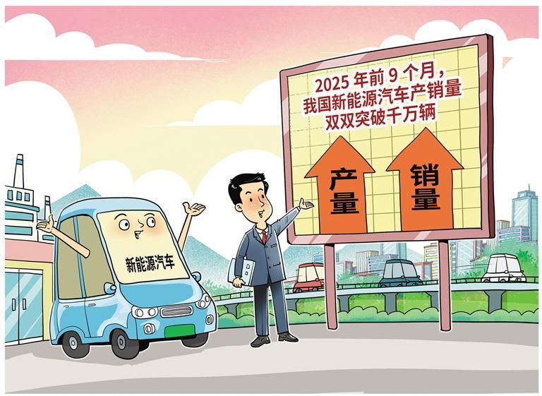 近日,中国汽车工业协会发布数据显示,今年前9个月,我国新能源汽车产销量双双突破千万辆,同比增幅均超过30%,彰显汽车产业蓬勃活力。近期,汽车以旧换新政策继续显效,地方车展火热进行,企业新品密集上市,汽车市场整体延续良好态势。面对这一良好局面,仍需多方协同、巩固拓展。相关部门应持续优化充换电基础设施网络,鼓励地方加大研发补贴,并进一步落实二手车绿色流通与动力电池回收体系建设;企业需加快关键技术攻关,聚焦电池能效、智能网联等领域,研发符合新规的高质量车型。可借助新能源汽车下乡与公共领域车辆电动化试点等契机拓展市场。此外,消费者也应关注政策与市场趋势,结合实际需求理性选购,共同促进新能源汽车市场健康发展。