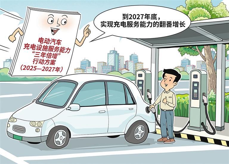 国家发展改革委、国家能源局等部门近日印发《电动汽车充电设施服务能力“三年倍增”行动方案(2025—2027年)》,明确到2027年底,实现充电服务能力的翻番增长。“十四五”期间,我国建成了全球最大的电动汽车充电网络。截至2025年9月底,全国充电设施数量已达1806.3万个,每5辆汽车就有2个充电桩;高速公路服务区建成充电设施超6万个,跨省出行“说走就走”。但也要看到,公共充电网络布局不均衡、设施功能结构待优化等问题仍然存在。聚焦充电网络变得更大、“织”得更密,行动方案作出新部署。未来,供给体系的完善将带来更大市场机遇。