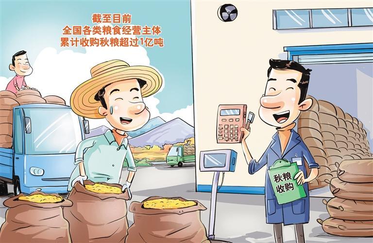近日,国家粮食和物资储备局发布数据显示,秋粮旺季收购自10月上旬陆续展开,截至目前,全国各类粮食经营主体累计收购秋粮超过1亿吨,收购进展总体顺利,呈现出收购进度快、市场购销活、优质优价等特点。持续优化为农服务,让农民卖“舒心粮”“放心粮”,还需多方协同发力。政策落实需持续强化粮食市场监测预警,密切跟踪市场动态,统筹抓好市场化收购和政策性收储;为农服务要全面推广预约售粮,组织流动服务队提供上门检测等一站式服务,减少农民售粮损失。此外,要加强执法检查,严打压级压价等行为,及时发布市场行情,保障农民权益,维护公平交易环境。通过政策托底、服务提质与监管护航,让丰收切实转化为农民增收。