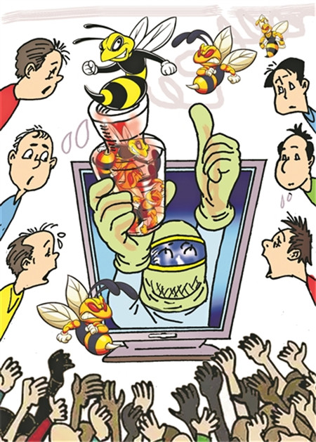 号称“三五只就能搞倒一头牛”、在一些地区被明确禁养的金环虎头蜂,近期现身多个直播间和二手交易平台,被商家以“用来泡酒”的说辞对外出售——据11月23日《新京报》报道,个别商家宣称饮用这种蜂酒可以改善风湿、颈椎病、手脚麻木,达到“先止痛再治根”的效果。
