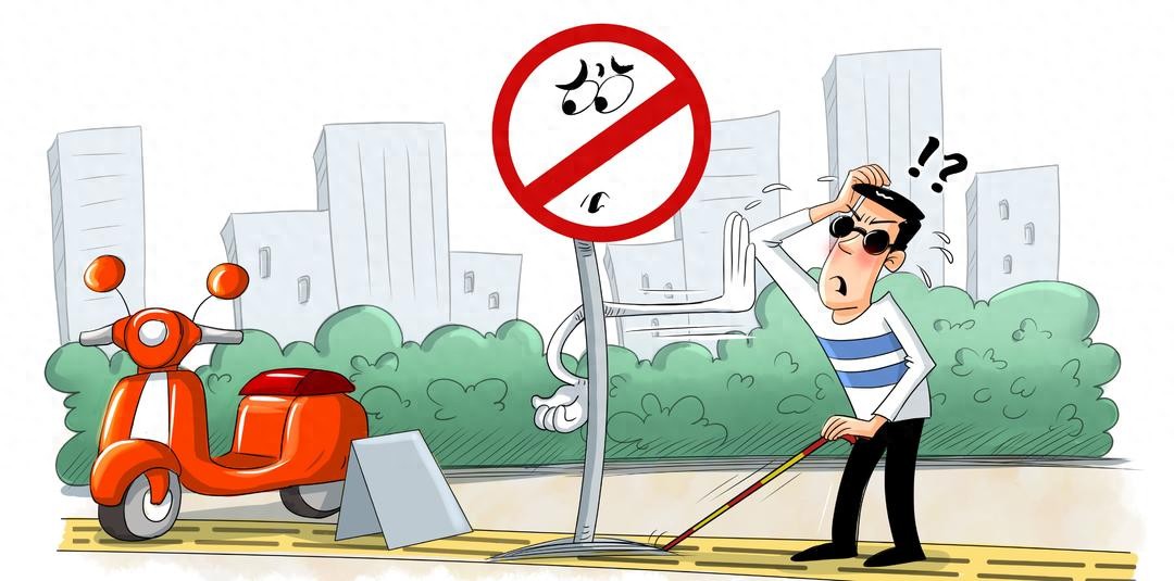 事件:盲道被占用或成了“断头路”,无障碍通道被钢管封堵……无障碍设施本是为了方便残疾人、老年人等行动不便之人,然而不少群众反映,一些公共场所无障碍设施缺失或被占用,还有一些设施不好用、不能用,导致行动不便者出行受阻。